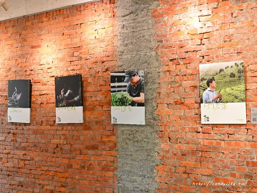 來到二樓,映入眼簾的是充滿溫度的紅磚牆空間,這裡是吃茶三千台灣概念店的人文藝室。牆面與展示區之間,陳列著吃茶三千職人團隊的故事與精神,呈現他們對茶的熱愛與匠心製作的過程。每一個細節都透露出品牌對「工藝與人文」的堅持,也讓人更深刻地感受到一杯好茶背後的用心