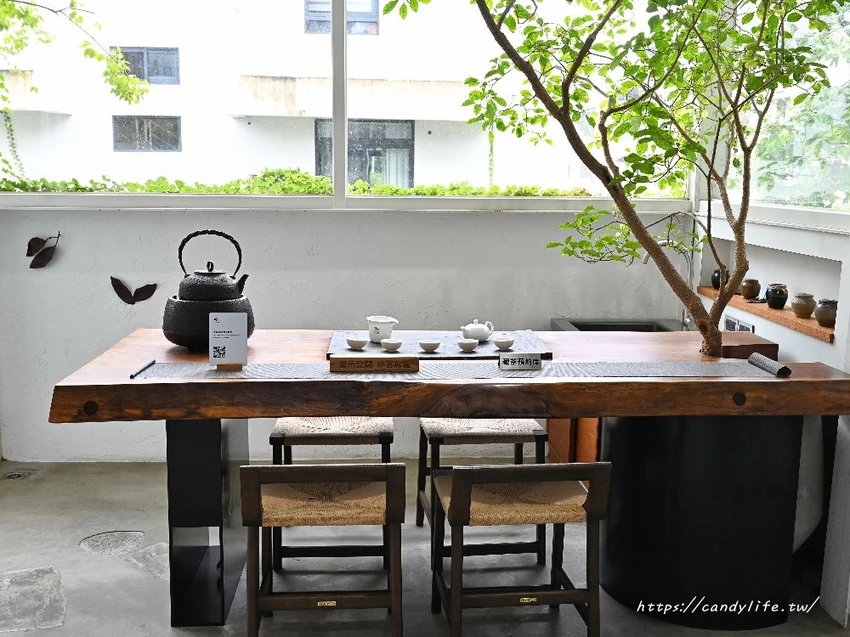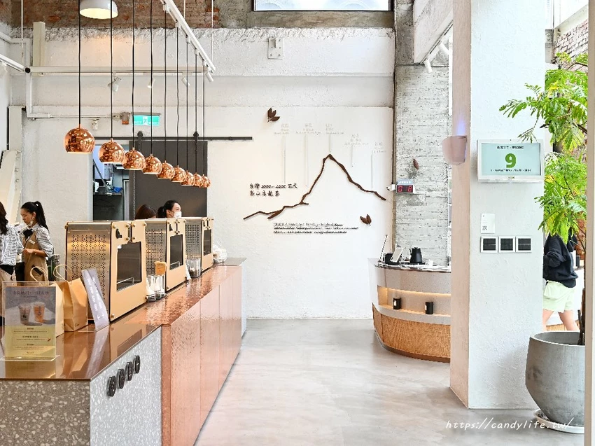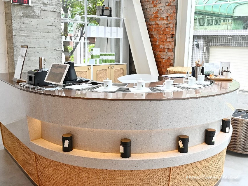 在茶牆前方,設有一個立飲區,讓客人能近距離欣賞整個萃茶與服務流程的過程。站在這裡,不僅能感受到茶香瀰漫的氛圍,還能一覽一樓開放式空間的全貌,從職人沖茶的專注神情,到整體空間的動線與設計,都展現出吃茶三千對細節的講究與美學的堅持