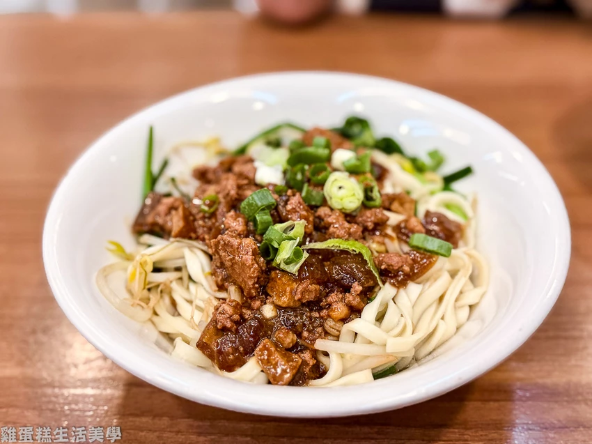 ▲炸醬麵 60元:炸醬麵的配菜是豆芽菜、韭菜,最後放上蔥花,炸醬使用瘦絞肉,沒有多餘的軟骨,鹹度適中,將麵拌開後超香。