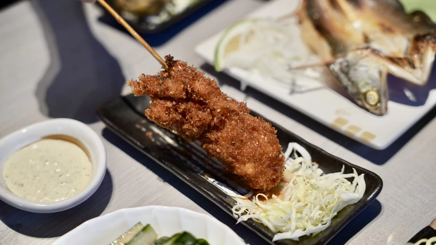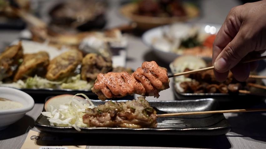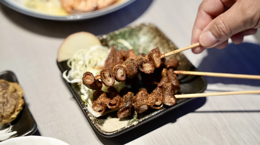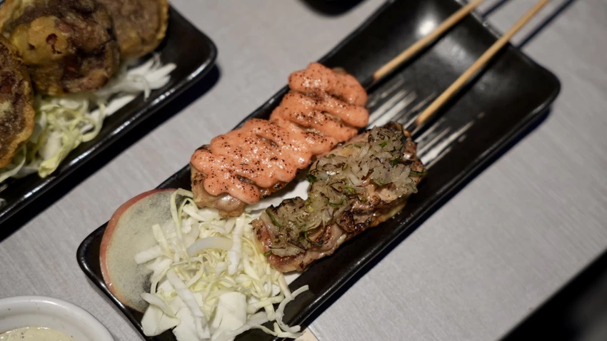小酌一杯一定要點烤肉串配酒,完美的下酒菜,推薦兩個口味:照燒蔥鹽和明太子的雞腿肉串,雞腿肉很軟嫩,重點是上面的醬料給滿滿,入口風味濃郁,記得要趁熱吃喔。