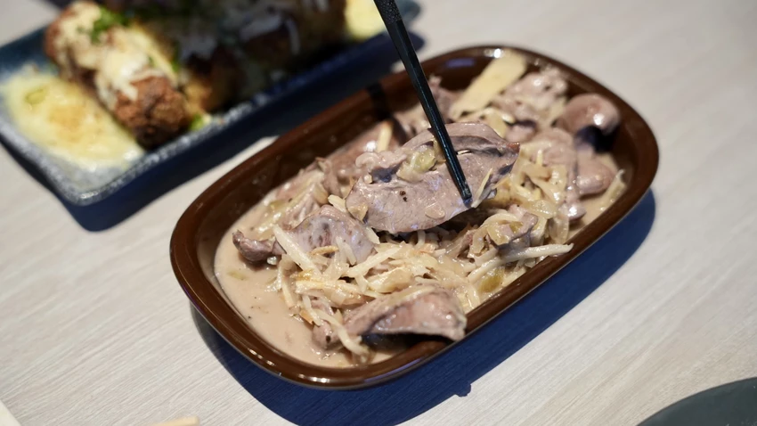家人大推一定要點酸菜爆炒豬心,這道絕對是功夫菜,在居酒屋很少吃到的料理,豬心口感脆口,酸菜是鹹香、酸甜味道,也是沒有內臟味,非常適合當下酒菜。
