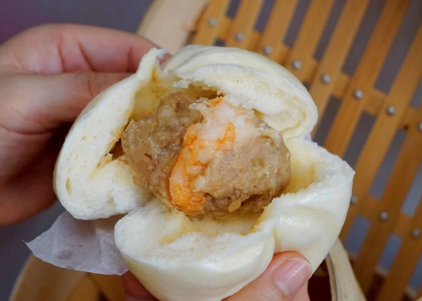 包打天下的鮮蝦包真的很狂!不是碎蝦或切丁,而是直接包一整尾的蝦在裡面,咬下去可以感受到蝦子的彈牙感,鮮味很明顯。肉餡不會糊糊的,是吃得到顆粒、帶厚度那種紮實口感,搭配蝦本身的甜味,兩個味道融合得剛剛好。不用特別加醬就很好吃。