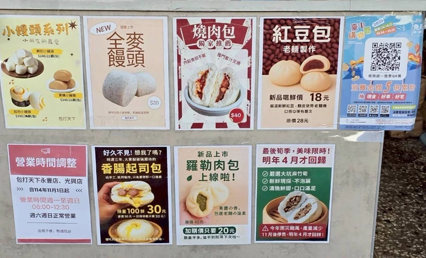 這間位在台中太平的「包打天下包子專賣店」最近真的蠻有話題,目前的營業時間是早上6:00~12:30,主要以早午時段為主,所以想吃的朋友可以安排一下時間。最棒的是,假日也有營業,週六、週日都能買得到,不用再怕錯過平日時段了。