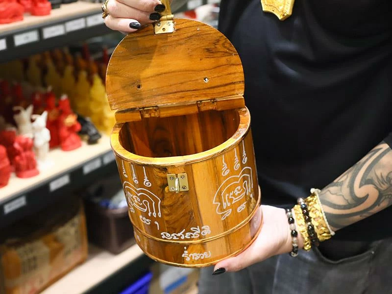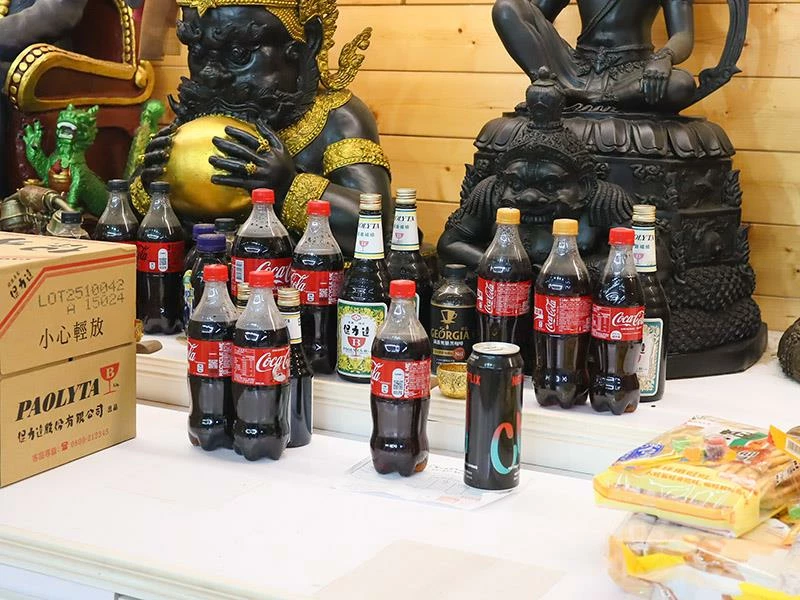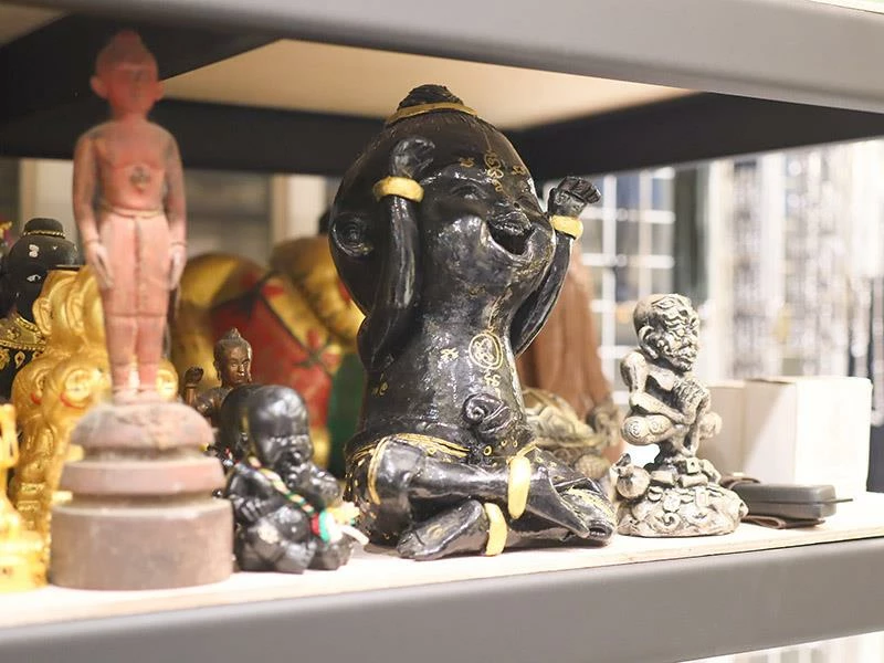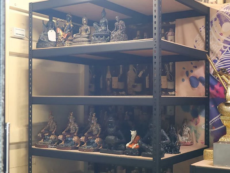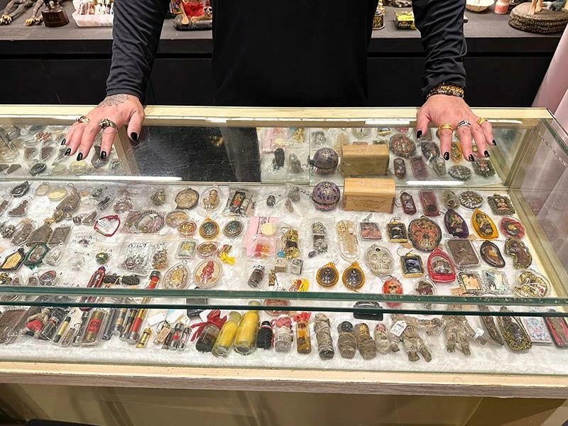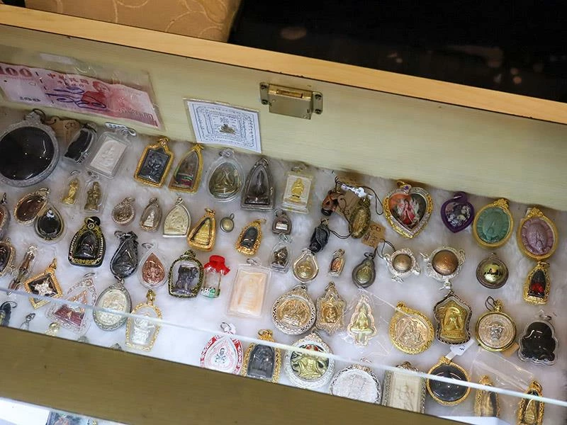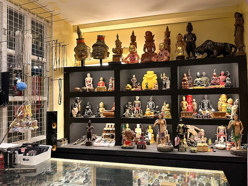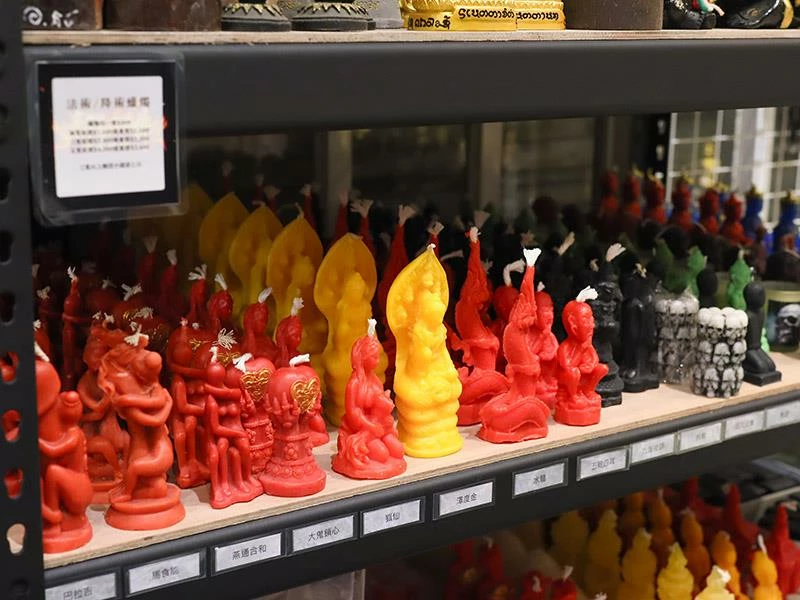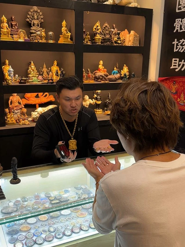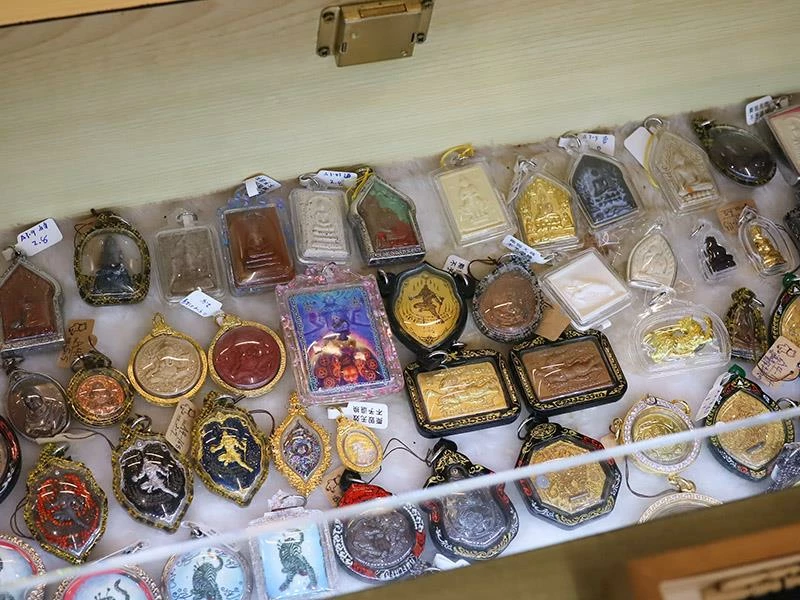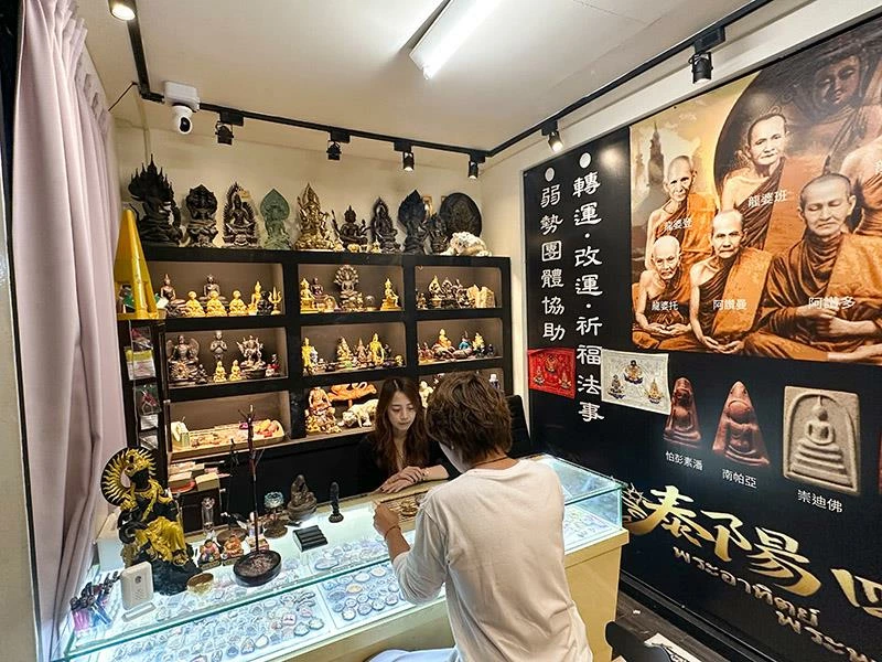 泰陽四面佛殿也提供佛牌選擇,老闆不會亂開價,也不會推銷,而是耐心說明每一尊佛牌的由來、師傅、開光方式與加持內容。這裡有正法加持的正牌,也有帶有靈體力量的陰牌,但老闆總會提醒,不論選擇哪一種,最重要的都是「心存善念」,才能讓信仰成為一種良性循環。他也會分享蠟燭、古曼、存錢筒等相關文化故事,讓人不只帶走力量,也帶走理解與尊重。