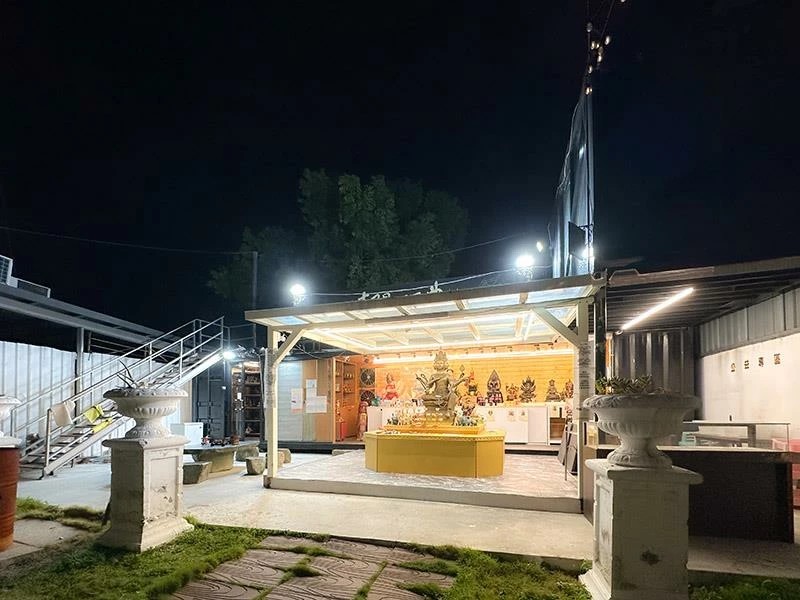 在頭份民族路上,有一間我認為是目前看過規模最大、氣場最溫暖的四面佛殿——「泰陽四面佛殿」。整體空間佔地約百坪,是少見的庭園式戶外佛殿,佛像莊嚴宏偉,空間開闊舒適,就連老闆的胸襟也同樣寬廣。這裡不以販售為主要目的,反而更強調歡迎任何人都能進來坐下休息、安靜放空,沒有催促、沒有壓力,就算是 I 人也能自在呼吸。老闆過去甚至曾收容迷途的年輕人,引導向善,不論宗教信仰,這份暖度比香火更令人動容。