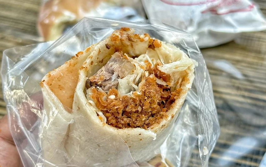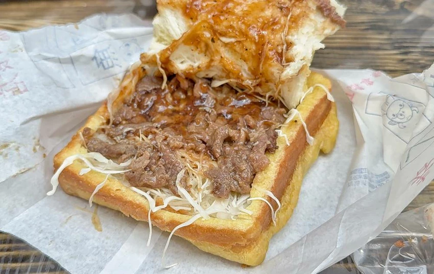 靠近后豐大橋的春米點心美食,是許多人會特地繞過來外帶的點心攤。巨長春捲是招牌,店家還貼心設置裁剪區方便分食。內餡有高麗菜、冬粉、蔥花與肉末,口感超級酥脆;牛肉棺材板同樣出色,炸到金黃的厚片吐司吸滿醬汁,和南部的棺材板風味很不一樣。
