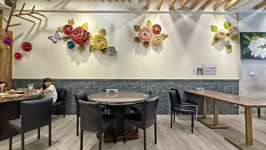 店內為長條型配置,桌子分成方桌與圓桌兩種,整體動線稍微緊湊。當天入座時只有少量客人,店家採自行選位方式。若是家庭客或帶小孩,圓桌相對比較寬敞,坐起來舒適度也更高。桌面提供 QR Code 點餐,免等服務人員即可自行操作。