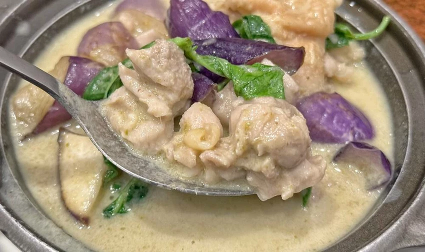這次點的餐點包含綠咖哩雞肉、打拋豬、月亮蝦餅、炸春捲、高麗菜、豆腐煲與白飯等,多為常見的雲泰家常菜色。整體調味偏清爽,辣度與香料風味較溫和,家庭客或不吃重口味的族群接受度較高。綠咖哩的香料層次較淡,屬溫和型;打拋豬較像台式絞肉拌飯,沒有太強烈的泰式羅勒味;月亮蝦餅酥脆但表現平實;春捲與蝦醬高麗菜口味偏淡;豆腐煲則是全家最一致好評的一道,味道順口不膩。整體來說,一桌菜吃下來風味偏台式,更像家常型雲泰餐館。