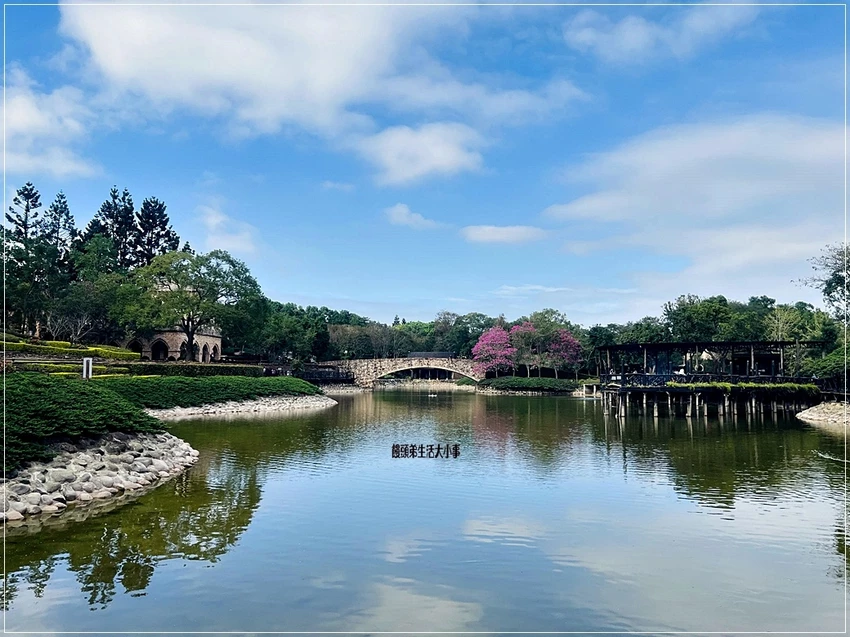 無論是在綠蔭下散步、沿著湖岸漫遊,或駐足欣賞古堡倒映在水面的景象,新社莊園都以沉靜自然的環境吸引旅人停留。園區每一處布置都展現「與自然共生」的理念,讓人在山林間放鬆身心。廣闊的步道、古樸建築與層次豐富的植栽,使整個莊園成為遠離都市喧囂的靜謐美地。