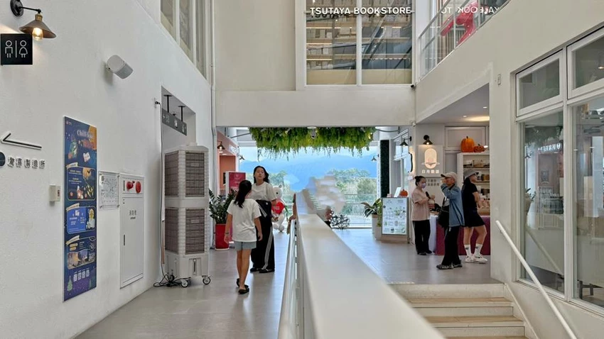 商場主館為白色四層樓建築,一樓集合日月本家、杰士披薩、海滋味、品芯梅酒、蒜你厲害等品牌;二樓有 WIRED CAFÉ、朝霧茶莊、驚喜製造所、有益帖等店舖;三樓由 TSUTAYA BOOKS 與 WIRED CAFÉ 共同進駐;四樓需從書店內階梯前往。館內動線寬敞乾淨,也提供整潔明亮的洗手間,是旅途中能輕鬆停留的好地方。