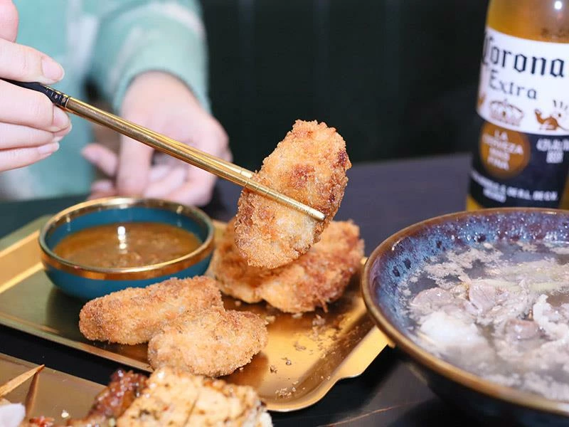 想吃飽一點可點烏龍麵,炒得香氣四溢、肉片給得大方,麵條彈牙又夠味。炸牡蠣則顆顆飽滿多汁,搭配自製泰式醬酸香開胃。宙匯燒烤不只出菜實在,店內氣氛輕鬆自在,越晚越有味道,是新竹深夜小聚的好去處。