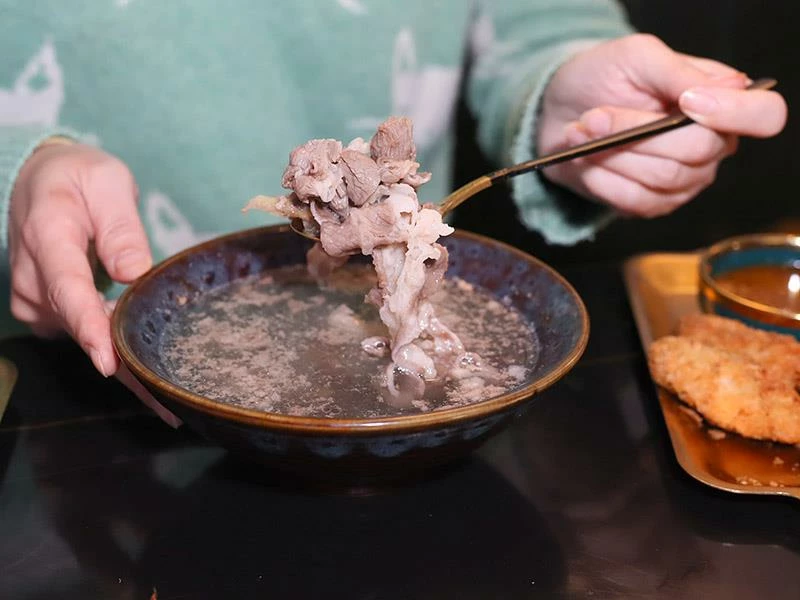 秋冬時節最受歡迎的就是招牌羊肉湯,$90 就能喝到滿碗厚切羊肉,湯頭濃郁卻不油膩,熱熱喝尤其暖胃。肉片份量多、口感軟嫩,價格實在,是許多老客人到店必點的熱湯選項。