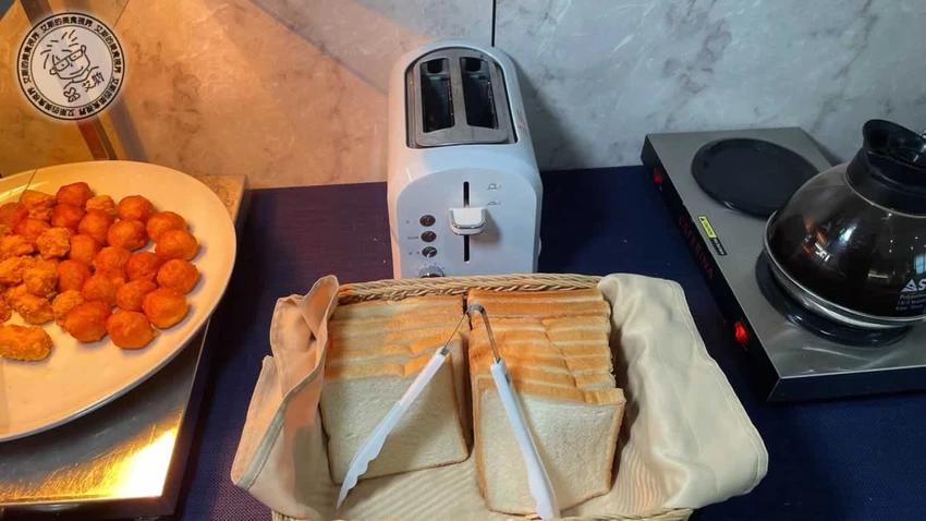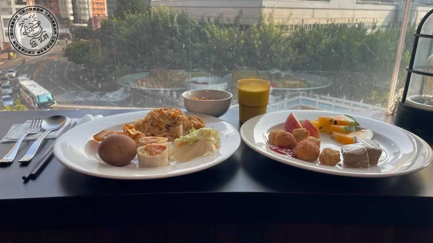 早餐在六樓供應,大片玻璃窗把街景框成一幅畫,邊吃邊看城市醒來的樣子格外舒心。餐點走精緻路線,不做誇張大陣仗,而是將每樣品項做到位。西式吐司、炸物、台式炒泡麵、清粥小菜等選項都有照顧到,外國旅客與家庭客都能找到喜歡的味道。