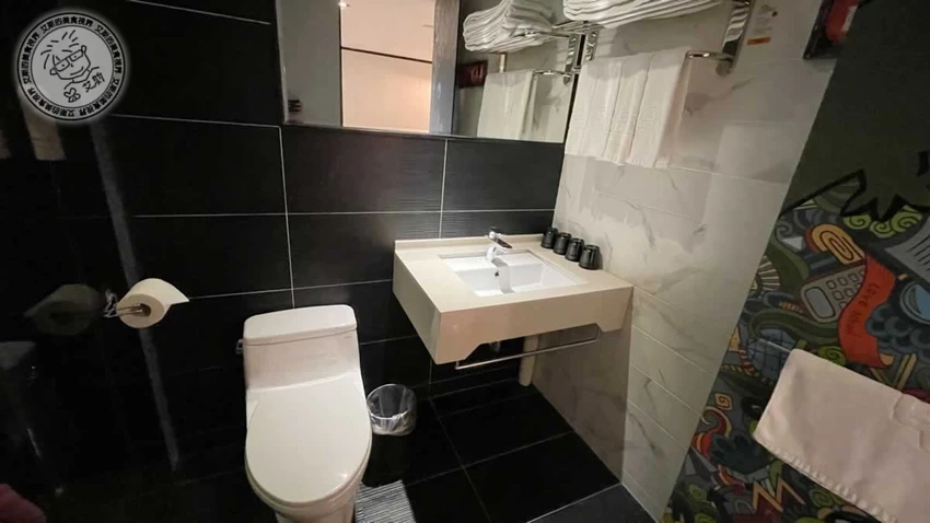 一走進大廳,就是乾淨明亮的現代風,沒有過度裝飾,卻讓人感到安穩放鬆。櫃台旁放著 Agoda 8.1 分的評價標牌,像是在默默告訴旅客「安心住吧」。電梯則帶點美式復古氛圍,讓入住的第一眼多了一點個性。若忘記帶備品,也能直接在櫃台購買。