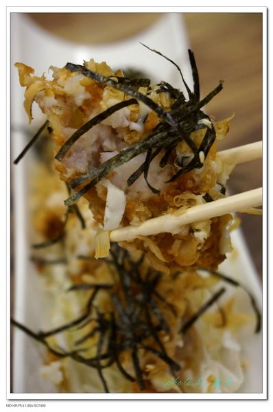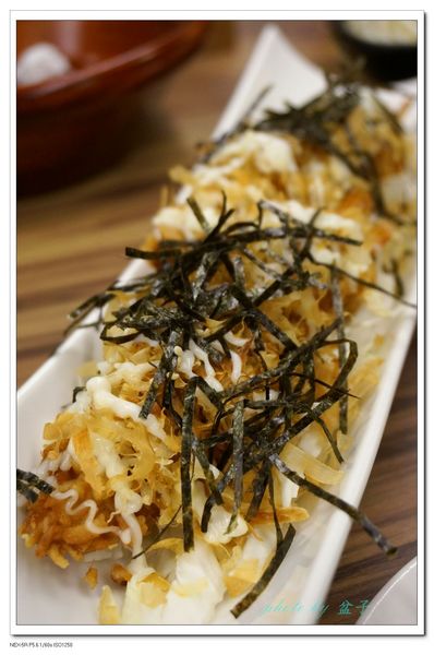炸的酥脆的麵衣上有美乃滋跟海苔提味,