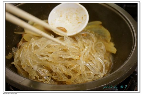 然後加入冬粉或麵條下去拌炒~~~