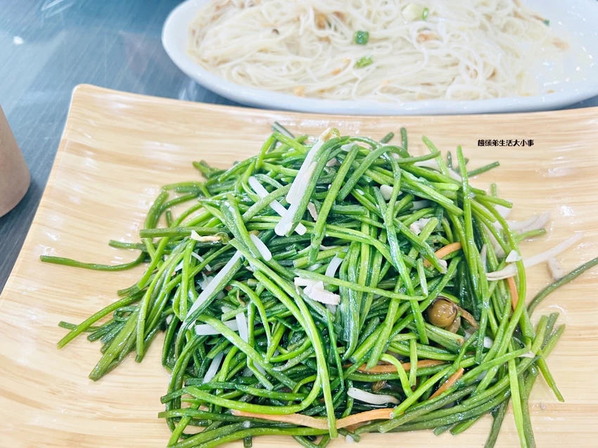 除了招牌桶仔雞,不少旅客也會順手加點周邊熱炒,包括油雞悶竹筍、川燙小卷、避風塘中卷、酸白菜炒牛肉、銀芽水蓮等,每道都是熱騰騰上桌,是配著白飯最剛好的口味。蔗香雞油麵線濃郁、滑順,是許多常客的固定班底,拌著蔗香雞油的香氣,搭配桶仔雞一起吃更是絕配。
