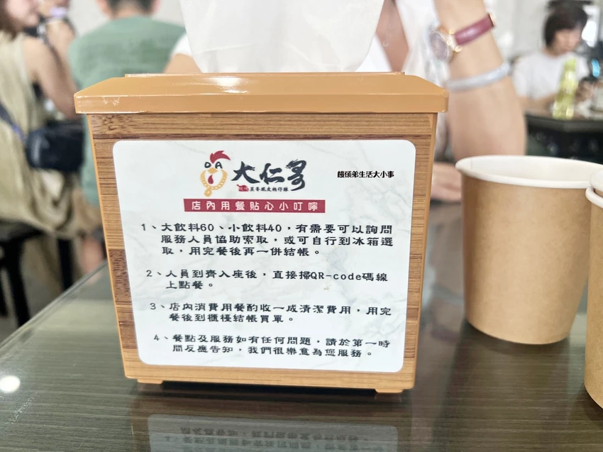 大仁哥蔗香脆皮桶仔雞宜蘭旗艦店座落於壯圍大福路旁,黃色招牌在鄉間中特別醒目。桌上掃 QR Code 即可完成點餐,簡單又快速。招牌桶仔雞全程現烤,一次烤製需約四十分鐘,剛出爐的雞皮薄脆到會碎、雞汁沿著切面流下,是許多老饕口中的宜蘭 No.1 桶仔雞滋味。