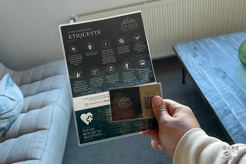 皇后鎮溫泉提供線上預訂服務,旅客可選擇時段與湯屋方案,完成付款後即可收到確認信。黃昏時段最為搶手,尤其是假日或旺季旅遊時,更建議提前一至兩週預約。若同行友人未泡湯,大廳也提供休息空間,從窗邊望出去的角度能看見剛玩過的噴射快艇軌跡,構成皇后鎮特有的旅遊節奏。