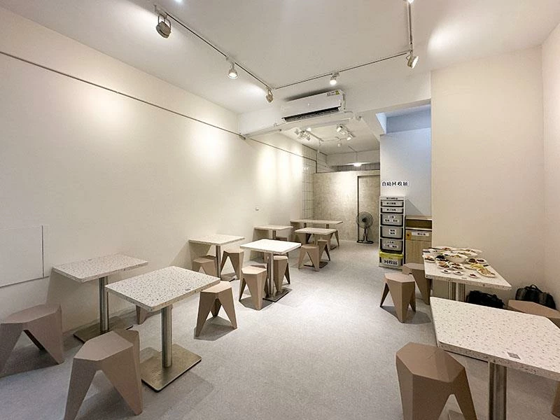 今年四月才開幕的鶴夾麵,外觀看起來安靜低調,木頭窗框與淺色外牆組合出一種乾乾淨淨的美。店內是半開放式廚房,料理過程都能看得見,用餐空間則像家裡餐桌般舒服又輕鬆。附近停車也不麻煩,金山南街與另一頭的停車場都很好停,園區上班族走過來吃午餐的比例更是超高。