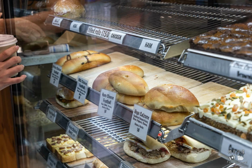 店內最吸引人的就是紐西蘭經典鹹派,人氣口味包括 Steak & Cheese Pie、Chicken & Mushroom Pie、以及早餐必點的 Bacon & Egg Pie。外皮金黃喀滋、內餡濃郁飽滿,搭上 Flat White 更是一絕。因為太熱門,許多口味都常在中午前就售完,店家也會提醒遊客「想吃請早點來,不然只能摸摸鼻子」。