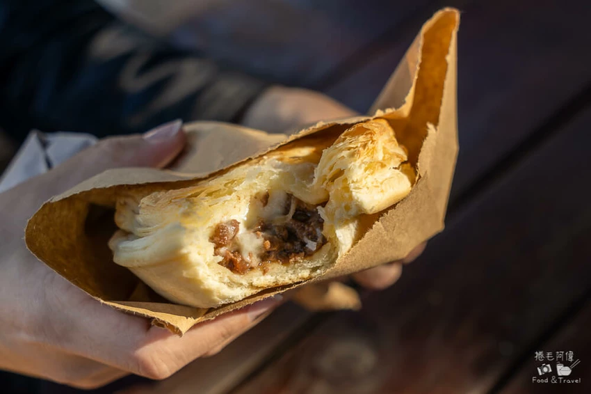 我們原本想買泰式綠咖哩雞肉派,卻剛好遇上前面兩位客人把最後的買走。正覺得可惜,沒想到對方竟願意分給我們一口。濃郁的綠咖哩香與派皮的酥度完美結合,辣香之後又帶著奶香,是意外吃到的驚喜。更巧的是,那位旅人竟然是正在紐西蘭打工的台灣人,旅行中的偶遇,就是這麼令人開心。