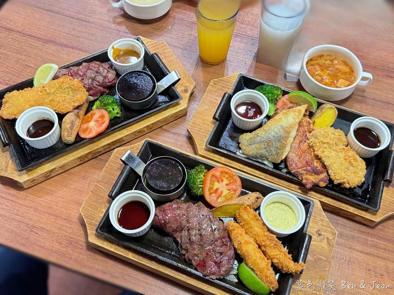 主打點主餐可享自助吧吃到飽!自助吧有咖哩飯、生菜沙拉、水果、麵包、湯品、飲料、咖啡…很豐富,算小有特色,純吃自助吧也是可以的。大推牛排的排餐雙人拼盤、海陸大餐、還有兒童餐。店裏的用餐空間舒適、整潔,團體聚會、慶生~很推薦!