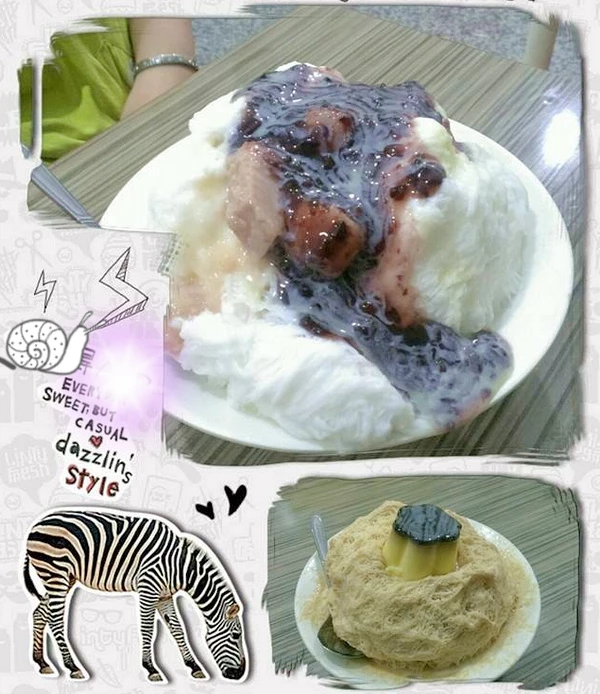 這裡的冰會有名是因為刨冰長得都很花俏,生日快樂冰、火山爆發冰、聚寶盆冰…哈哈哈。連MENU也太多選擇,讓人眼花撩亂啊~我們常來吃的是芒果冰,而Ben眼尖,看到高粱酒檸檬白冰也嚐鮮一下,呵呵呵