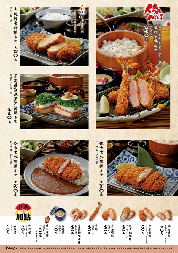 日本創業20多年的靜岡勝政日式豬排在大壢大江就能吃到原汁原味﹗從金芝麻豬排、里肌鍋膳到伊比利黑豚雙人套餐都很有誠意,是想念日式料理時的最佳選擇。
