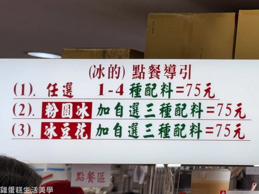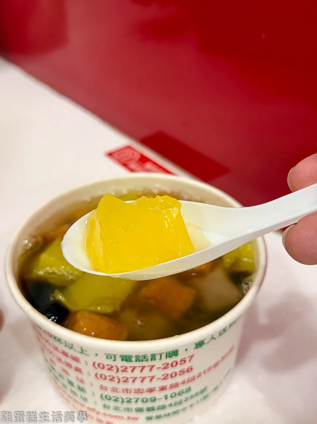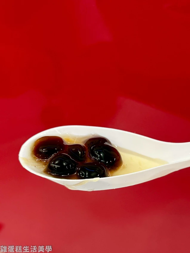 雞蛋糕短評:老字號冰店生意非常好,粉圓冰可選三種配料,底部有小碎冰可搭配,珍珠有Q度,粉粿軟綿,地瓜圓有嚼勁散發淡淡地瓜香氣。