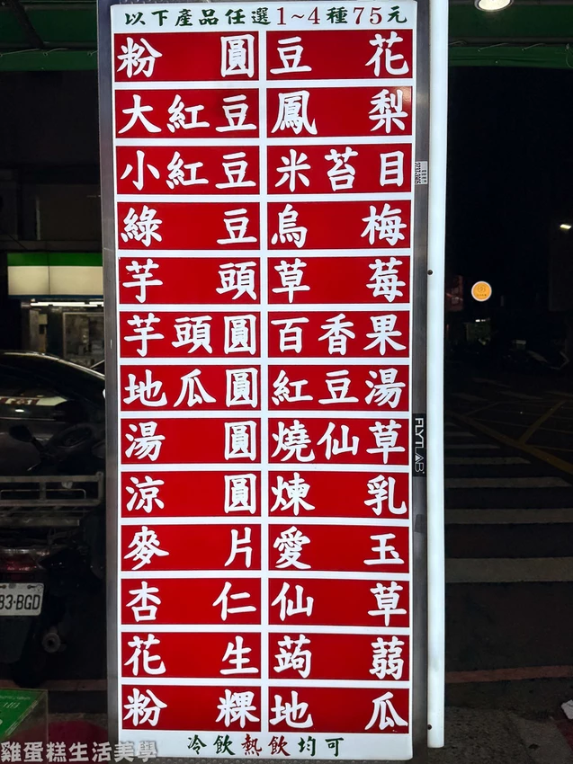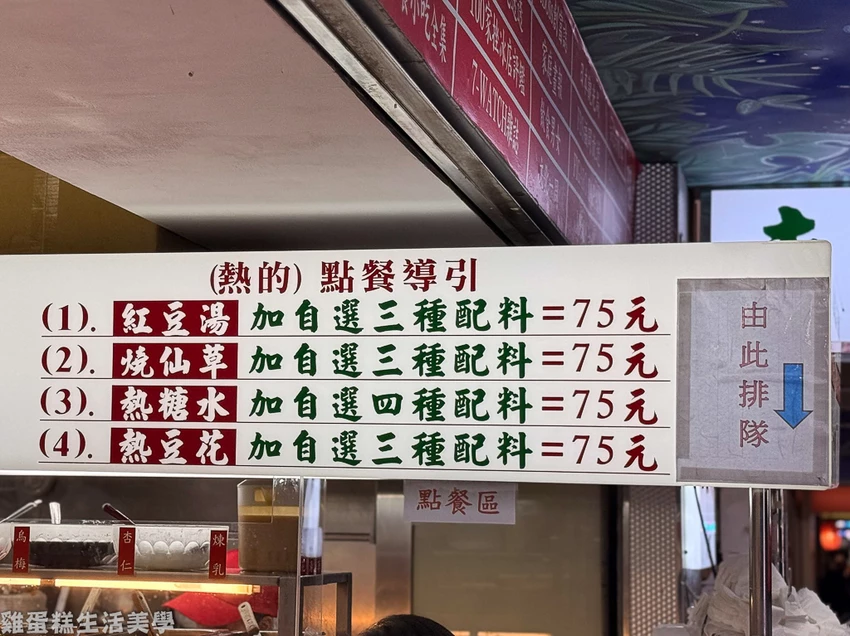 ▲東區粉圓菜單:菜單寫在門口可利用排隊的時間思考要點什麼,有冰的也有熱的可自己搭配喜歡的配料。
