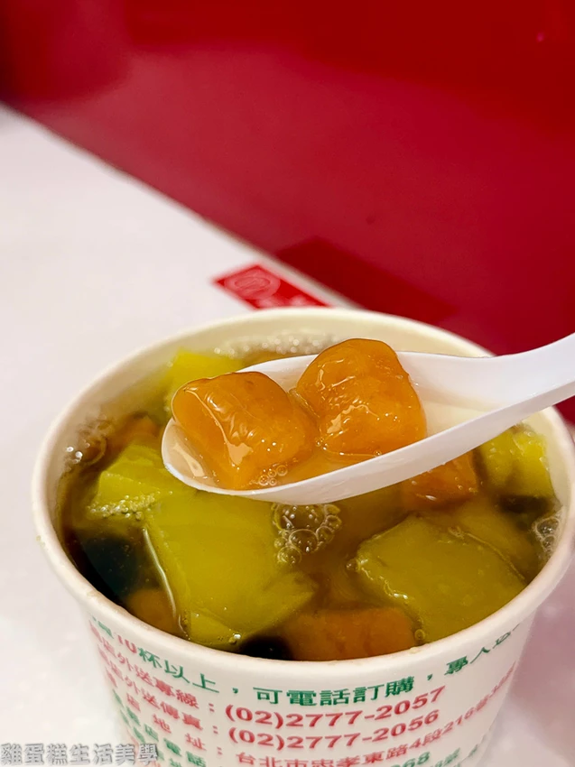 ▲粉圓Q度十足充滿黑糖香氣,粉粿有著軟綿的口感,地瓜圓充滿嚼勁,在嘴中有淡淡地瓜香氣,配料都很新鮮品質也不錯,重點是配料選擇超級多,難怪這麼多年還是屹立不搖。