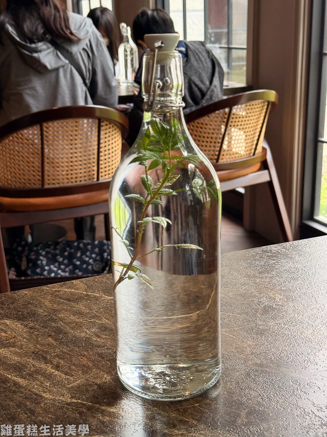 ▲桌上的瓶裝水放入了一小截萬壽菊,不僅有淡淡的香氣看著也賞心悅目。