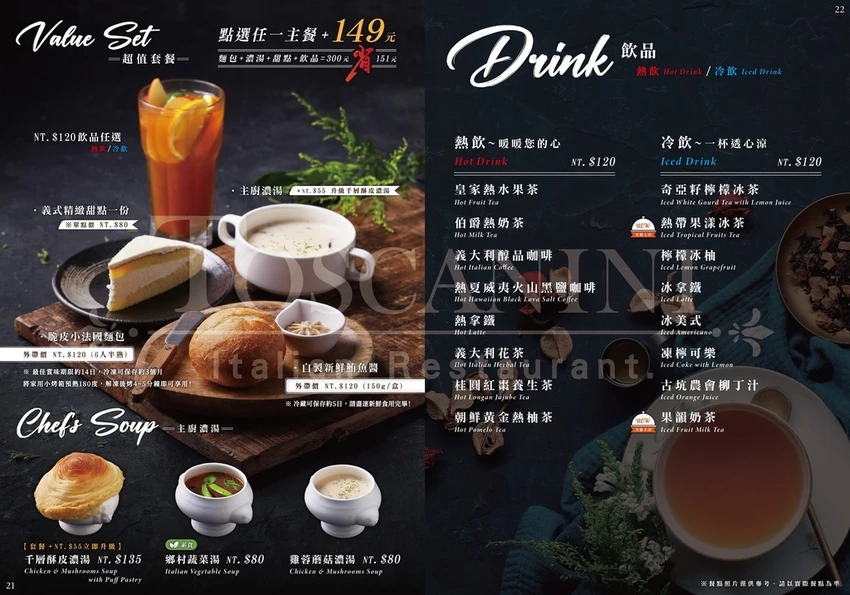 ▲任選一主餐+149元可升級套餐,多了麵包、飲料、甜點和濃湯非常划算,強烈建議一定要升級。