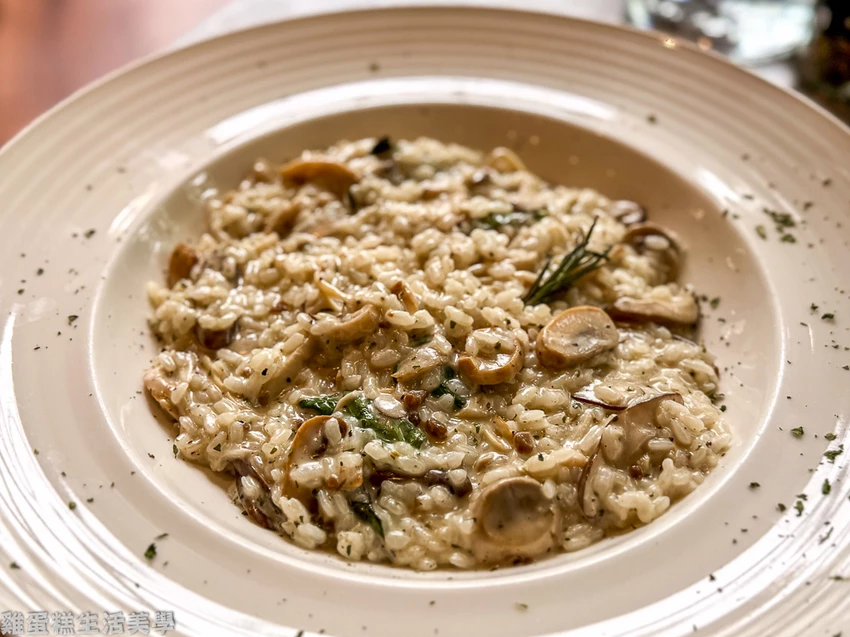▲牛肝菌野菇燉飯 360元:這道是店內人氣品項,使用四大名貴蕈菇搭配牛肝菌醬汁,有濃濃的奶油香氣和牛肝菌的野味,燉飯粒粒分明飽滿,米心已完全熟透,口味溫和很適合點給小朋友吃。