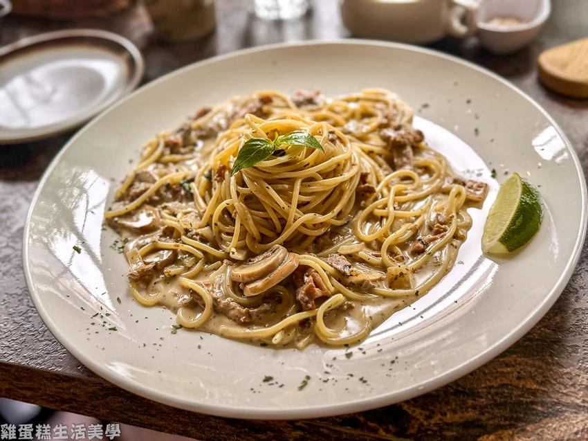 ▲肯迪亞煙燻奶油鮭魚義大利麵 360元:這道是白醬義大利麵,麵條充滿彈牙感,醬汁有濃厚的奶香,鮭魚肉質緊實鮮美,並帶有淡淡的煙燻香氣,白醬和鮭魚兩者相當搭。