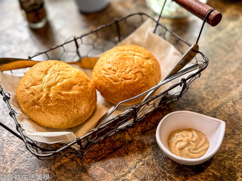 ▲麵包(套餐+149元):餐前麵包是使用脆皮法國麵包搭配新鮮鮪魚醬,麵包烤得脆度十足,塗上鮪魚醬後風味更加提升,麵包小麥的香氣與鮪魚醬的鮮甜完美融合,飢餓味蕾瞬間被開啟。