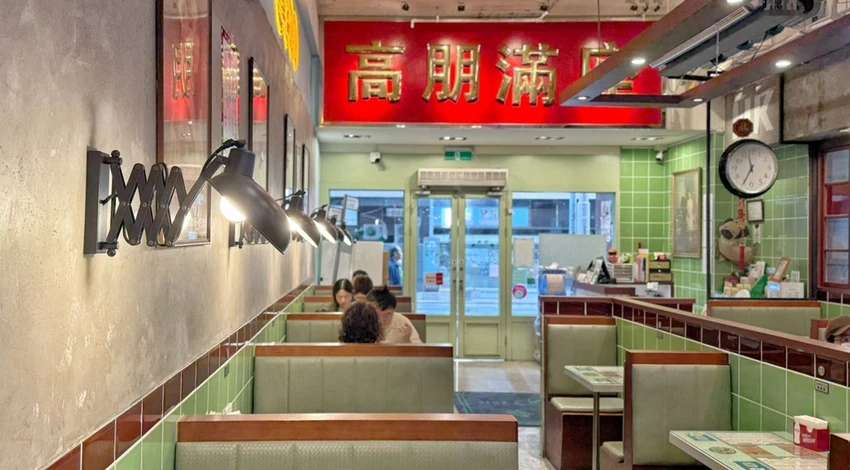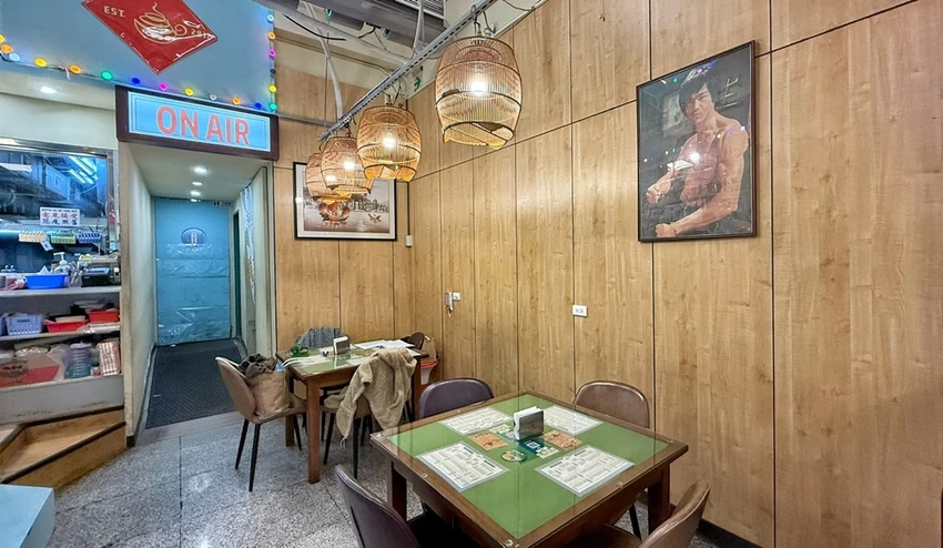 美生餐室中壢店的交通位置十分便利,現址搬遷至中壢百老匯宮廷 1 樓,就在威尼斯影城售票口旁。開車或騎車前來的朋友,周邊有不少付費停車場或停車格可供利用。這間店的格局屬於狹長的長方形,店內裝潢大量地使用了香港地名牌子、復古海報等元素,成功營造出濃厚的懷舊港式氛圍。用餐座位設計頗像傳統茶餐廳般的緊湊,這也是港式文化的一部分,讓顧客彷彿置身於香港街頭。點餐方式統一採用掃描桌上的 QR-CODE 進行,方便快速,結帳則在用餐完畢後到櫃台進行。