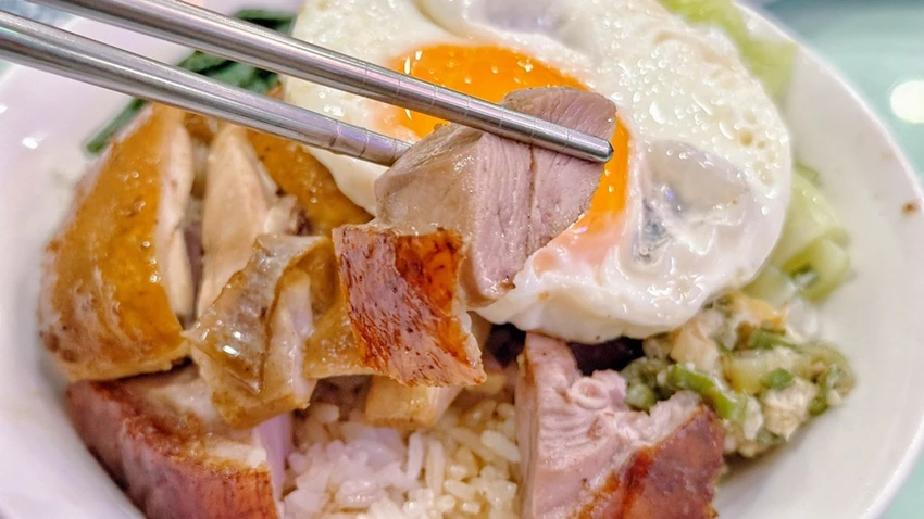 主食方面,公司三寶飯與蜜汁叉燒飯系列是許多人解決正餐的選擇,特別的是,叉燒飯系列的蛋都能選擇要半熟或全熟。此外,顧客還能加價更換成撈丁或是公仔麵,或是將蔥油轉為 XO 醬,增加了餐點的豐富性。