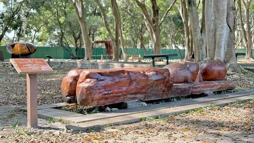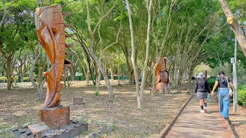 木雕藝術散落園內 步道轉角都藏著藝術家的手痕