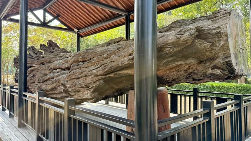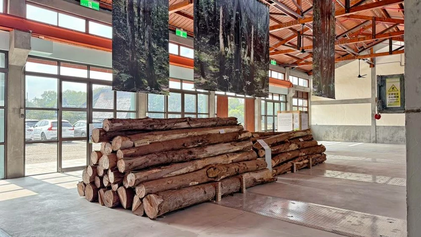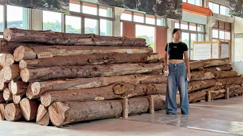 在製材廠旁展示著一株巨大的臺灣紅豆杉風倒木,是目前臺灣已知規模最大的紅豆杉倒木。它在1996年賀伯颱風侵襲時傾倒,後來經過艱辛運送才移至此處展示。巨木橫臥在戶外空間裡,像被時間擱淺在土地上的重量,讓人走近它時都忍不住放輕腳步。