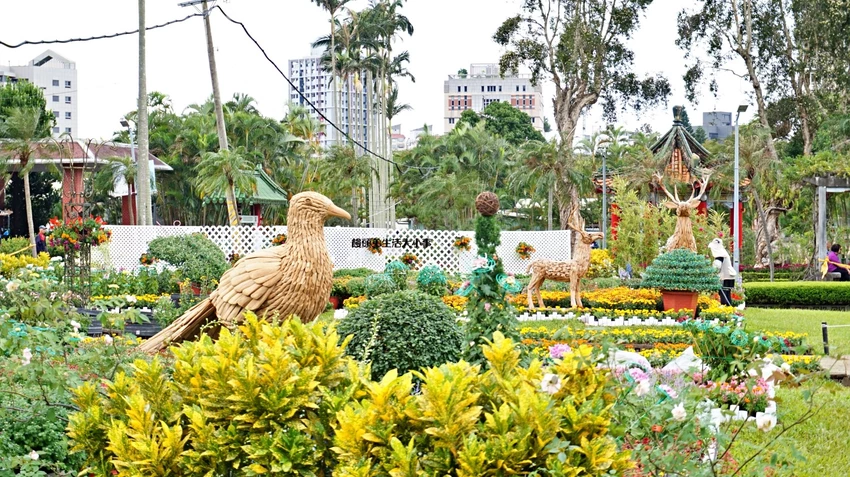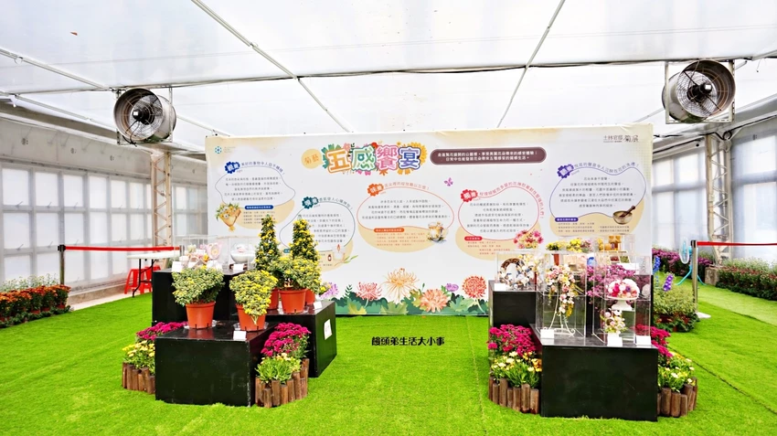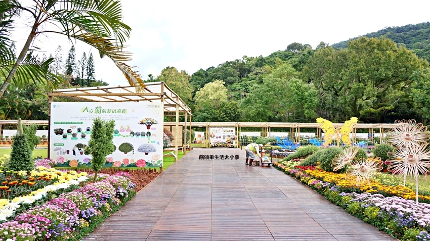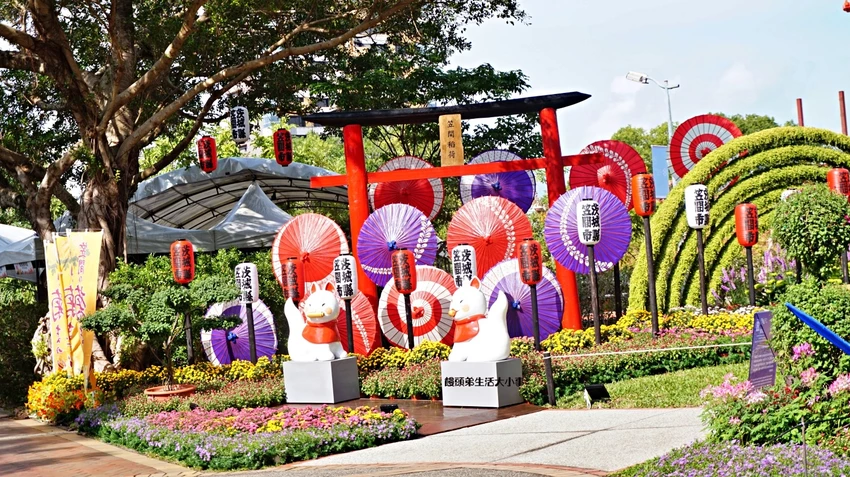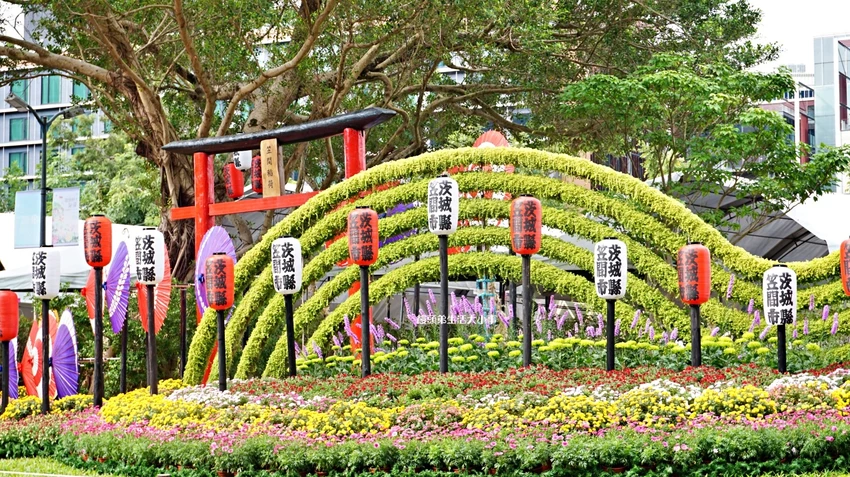 「夢花園」像一扇通往奇幻世界的大門,觀葉植物與菊花交織出溫柔層次,每一片葉子都彷彿在呼吸。延伸至以笠間菊花節為靈感的日式展區,蜿蜒小徑散發著濃濃和風氛圍,像瞬間完成一趟迷你日本旅行。台日交流與祈願意象在花色之間流動,散步節奏也自然慢了下來。