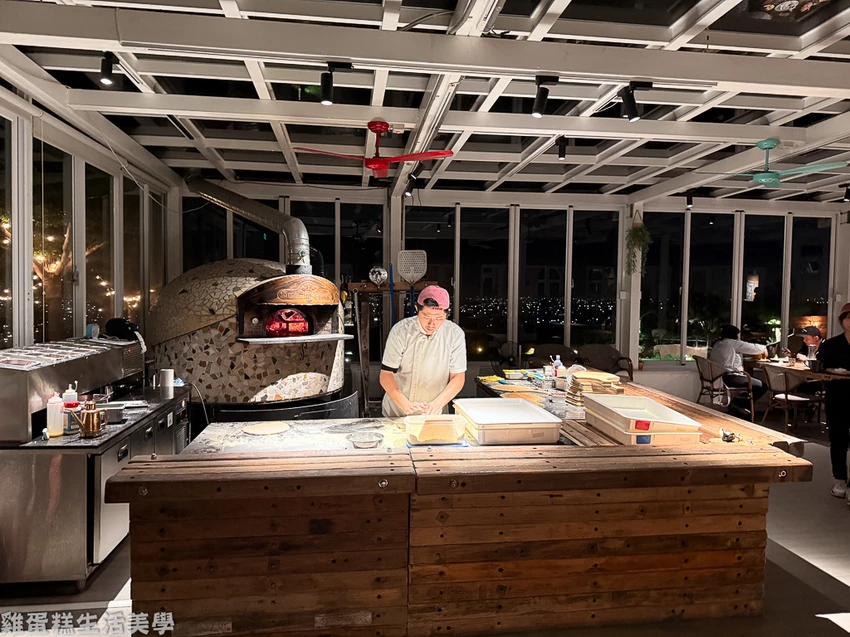 ▲回到一樓往外走,可以看到有專門的披薩師傅正在製作窯烤披薩,後方有個大型烤爐。