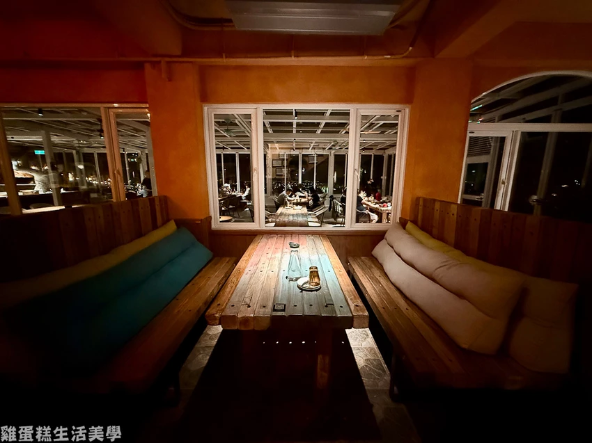 ▲一樓有長型沙發座位,可以坐4~6人,窗外離夜景較遠。