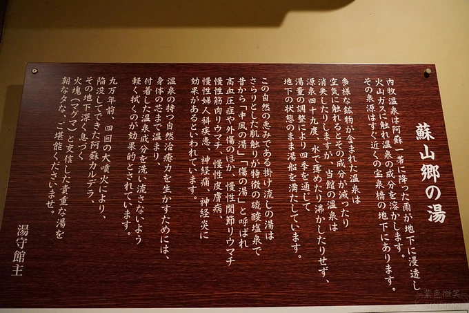 其實阿蘇內牧溫泉的一旁就是阿蘇火山,所以泉質也非常多樣還兼具療效呢,有些還像北投一樣,含有鋰的成份,是非常珍貴的泉質