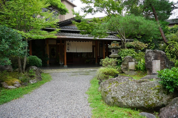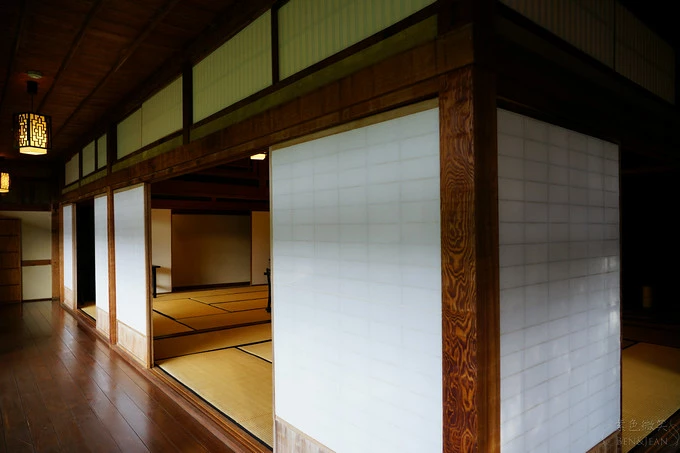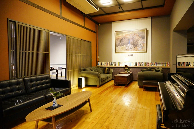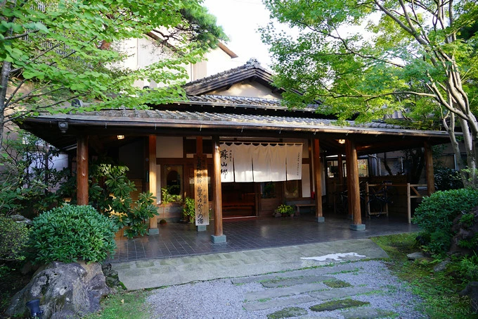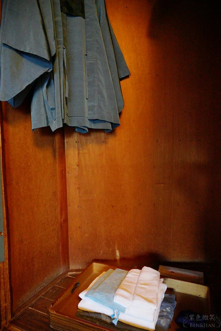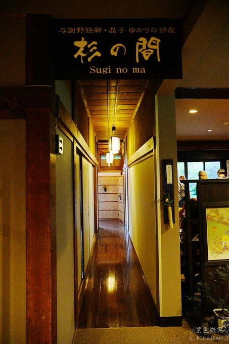 我們是傍晚左右到達的,這時候陽光斜射入內,光影的變化好有趣,門前的廊柱寫與謝野晶子曾入住過!! 與謝野晶子是日本著名的文學家