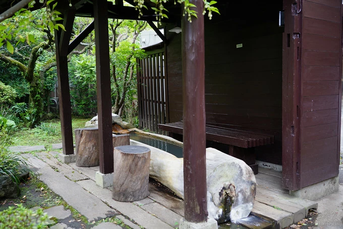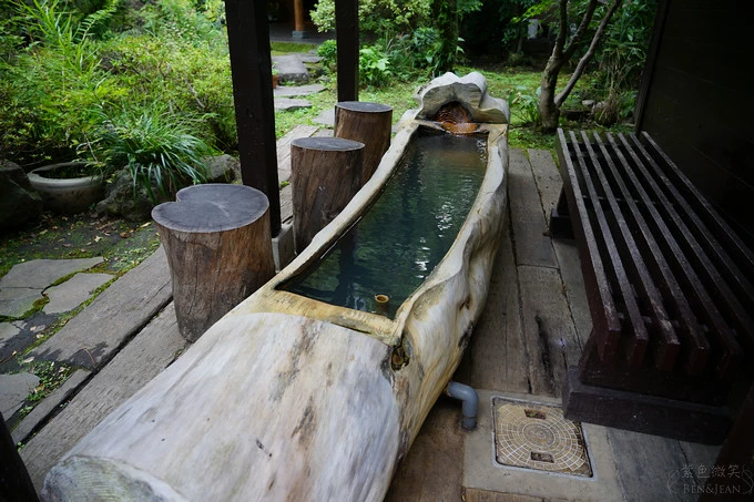 將樹木刨開,裏面挖成空心,當做水池用!! 這樣泡腳還可以欣賞美麗的庭園,還挺不錯的呢