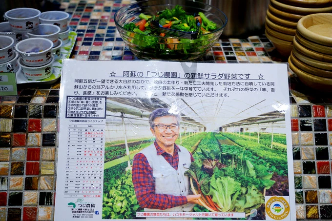 早餐的野菜沙拉也是來自於阿蘇的農園,因為這裏是火山地形,所以土壤相當肥沃,種出來的蔬果,品質一級棒