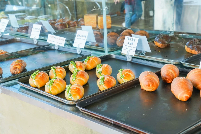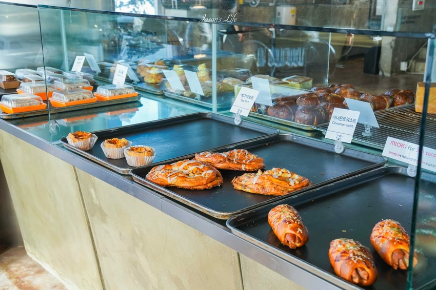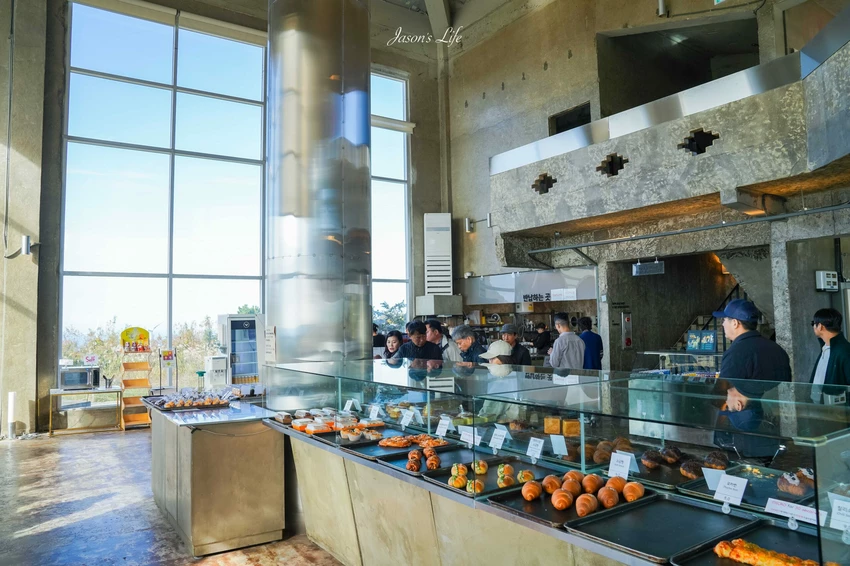 除了季節限定的浪漫戶外景色,Saebil Cafe 也以其烘焙甜點受到喜愛。店內販售多款自製麵包與蛋糕,搭配咖啡坐在窗前,旅行的節奏彷彿也跟著慢了下來。許多旅人會在此休息、整理照片或單純發呆,是濟州秋日難得的舒心角落。