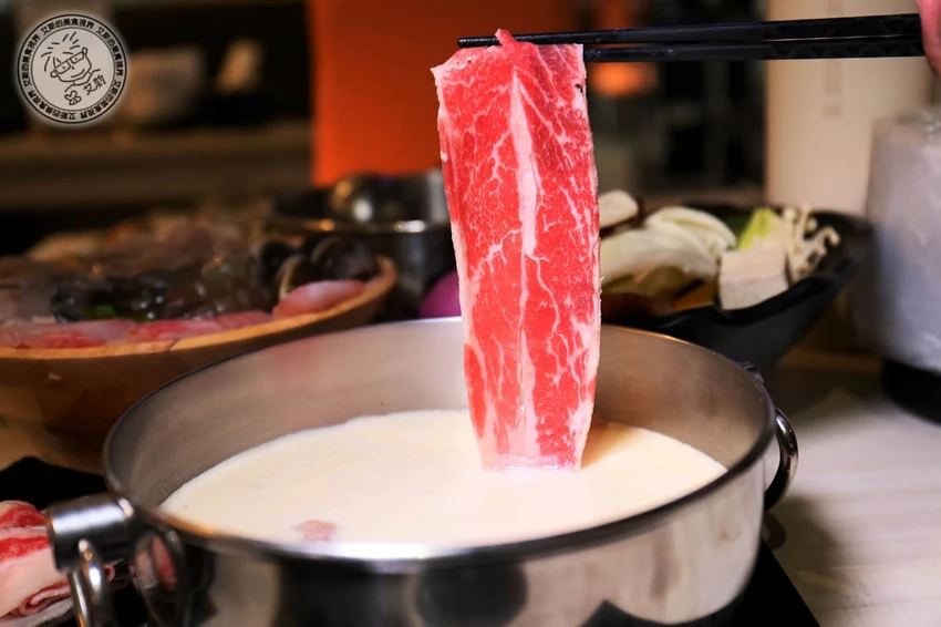 店內湯底採自由搭配,其中松露牛奶鍋香氣柔和、濃度適中,涮牛肉後能帶出更甜的油脂層次;剝皮辣椒鍋則以甜香與微辣交錯,暖胃又順口。兩款湯頭風味截然不同,卻都能凸顯食材本身的香氣,也很適合搭配麵類或蔬菜一起煮。